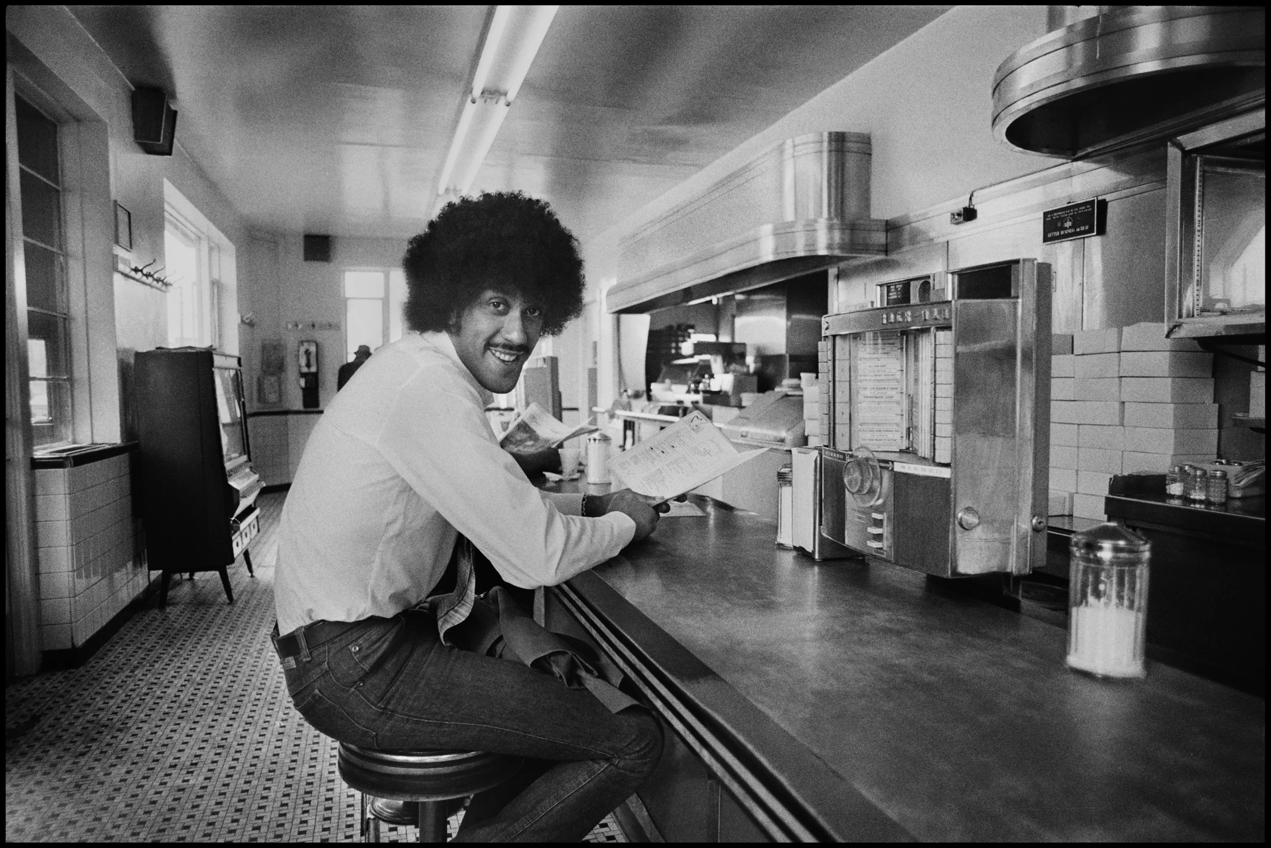 Turned out he thought I might prefer his home as a place to do pictures, this was unusual, most stars of his stature would never do this, they would want to keep you away from their house not invite you to go there. I arrived and was ushered into the kitchen, it was bigger than my parents home, and there were records everywhere. Piled up on the table, in boxes on the floor, I had never seen so many, in fact a lot of musicians have very few records, why bother listening to someone else when you make your own?